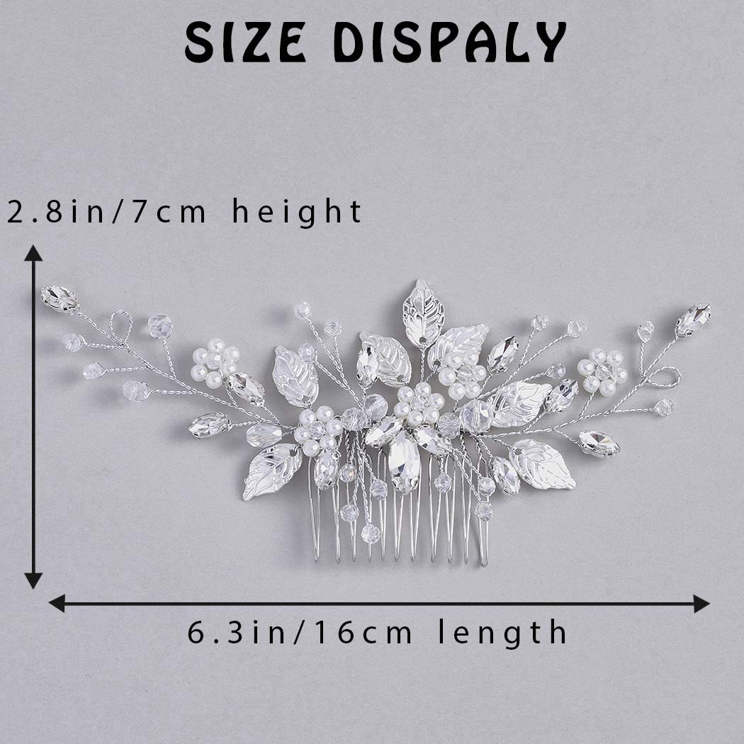 Jeairts Leaf Bride Wedding Hair Comb Rhinestone Pearl Bridal Hair Pieces Flower Wedding Headpiece for Brides Crystal Hair Accessories for Women and Girls (1-Silver)