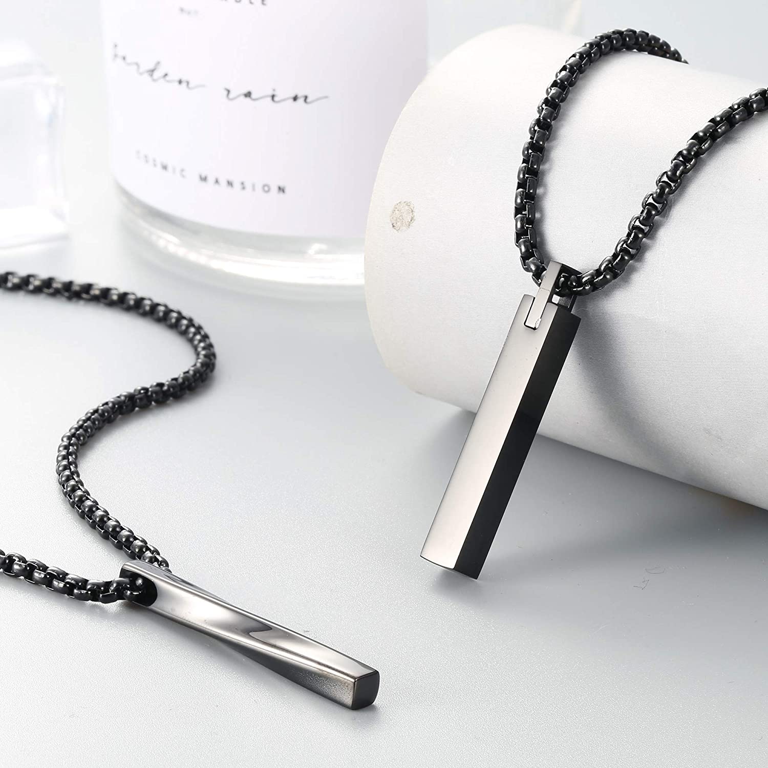 • PRODUCT SIZE--Thick Bar Pendants Size: length: 40mm,width: 5.8mm,thick:5.8mm; Twisted Cube Bar Pendant Size: length: 40mm,width: 3.6mm,thick:4.6mm;All Come with a 3mm 24 inch chain. Perfect size for men and women