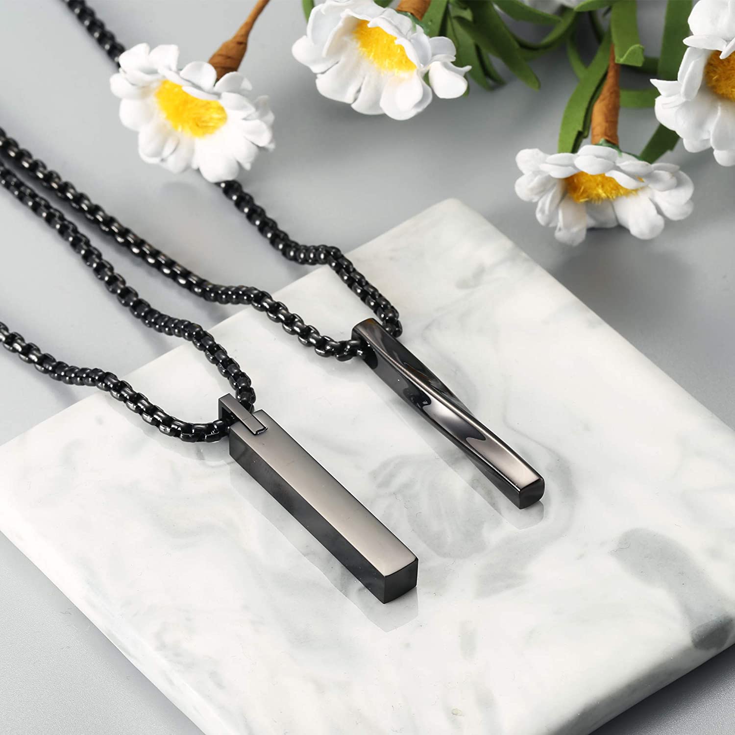 • DESIGN & GIFT READY--Black Twisted Cube Bar Pendant Necklace for Men and Boys, Stylish and Shiny, Less but Better.Perfect weight and comfortable to use, daily wearing necklace.Great Gift for Birthday, Graduation, Aniversary, Christmas, Valentine's Day, etc...
