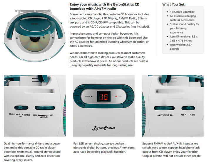 - PORTABLE TOP LOADING CD PLAYER: Top loading CD player, LED display, enjoy your favorite CD or personally recorded CD-R and CD-RW discs and so on.