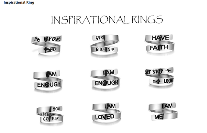 • ?This fabulous rings is a great motivational gift idea for your friends, wife, girlfriend, daughter, mother, sister.It’s a perfect gift for birthday,Valentine's day, Christmas, graduation, office party or any other gift giving occasions for women/men go through rough times. Everyone wears it all the time to remind that everything will be alright.