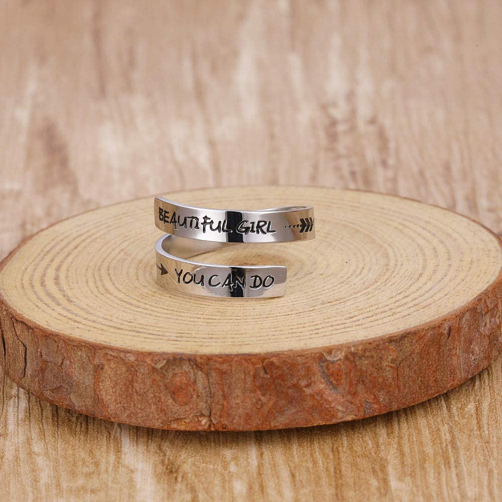 • ?Handmade Inspirational girls ring, Engraving beautiful girl you can do hard things. Simple but lovely words of inspiration.for everyday wear,and at the same time reminds the wearer that life is beautiful every day of life.