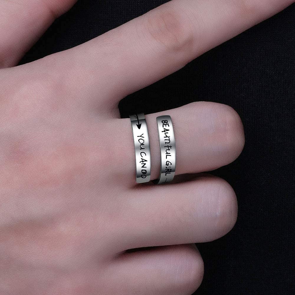 This inspirational rings with Simple but lovely words of inspiration, this message engraved Ring serves as a must-have jewelry accessory to adorn the outfit, enlighten the mind and empower the spirit. Whenever you're feeling down or losing strength, just read the inscribed words on it and gain the motivation to continue your day.. It's a absolutely powerful piece of jewelry.