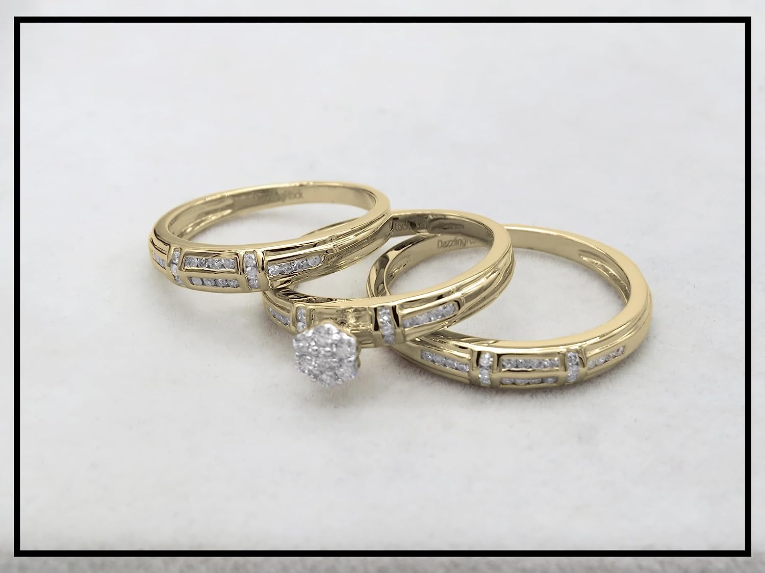 Dazzlingrock Collection 0.50 Carat (ctw) Round White Diamond Cluster Wedding Trio Ring Set for Him & Her (0.50 ctw, Color I-J, Clarity I1-I3) in Gold