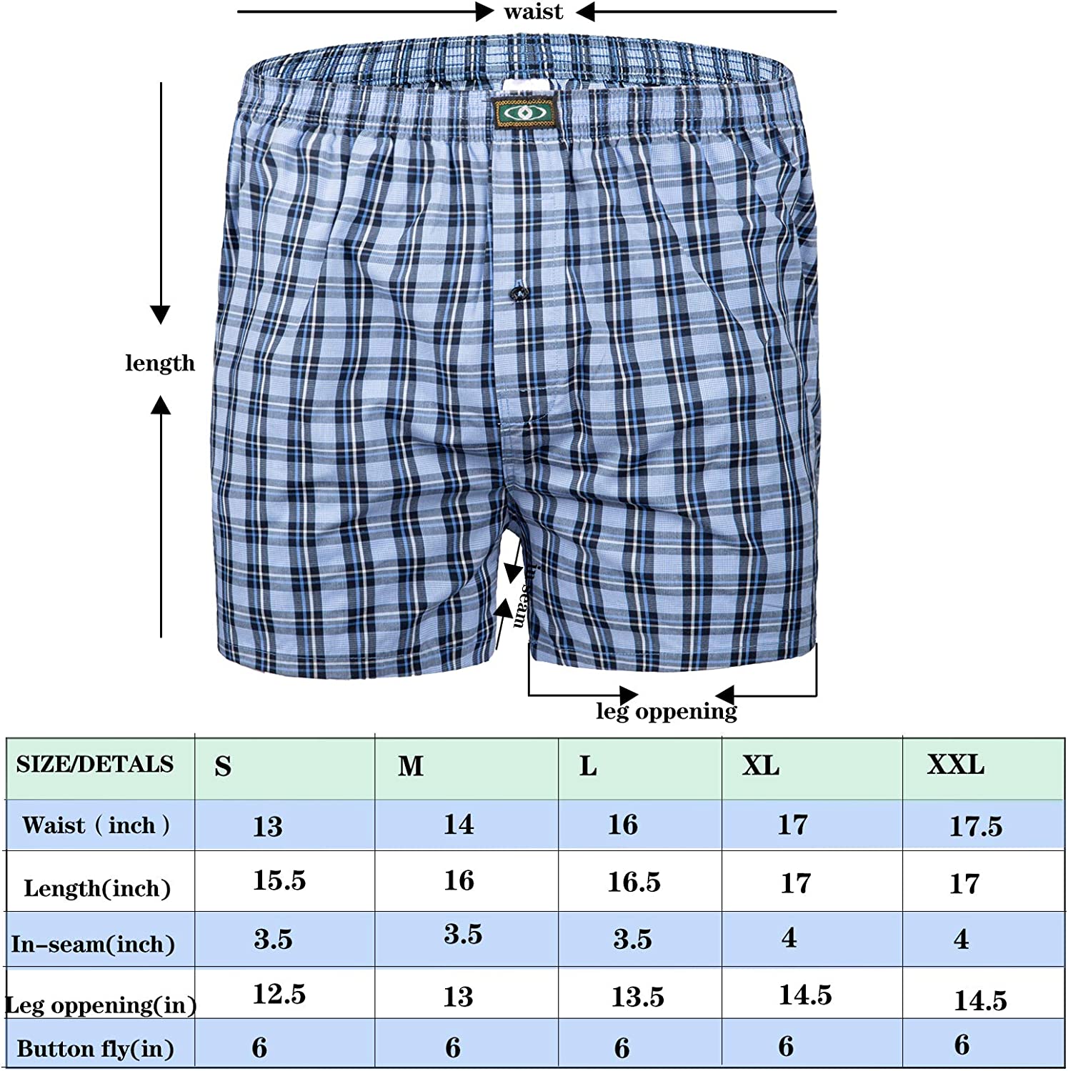 Quality fabric: These cotton boxer shorts is made of high density poplin fabric,breathable,less shrink and no fade.