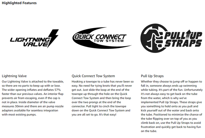 • Quick Connect Tow System – Effortlessly connect the tube to the rope