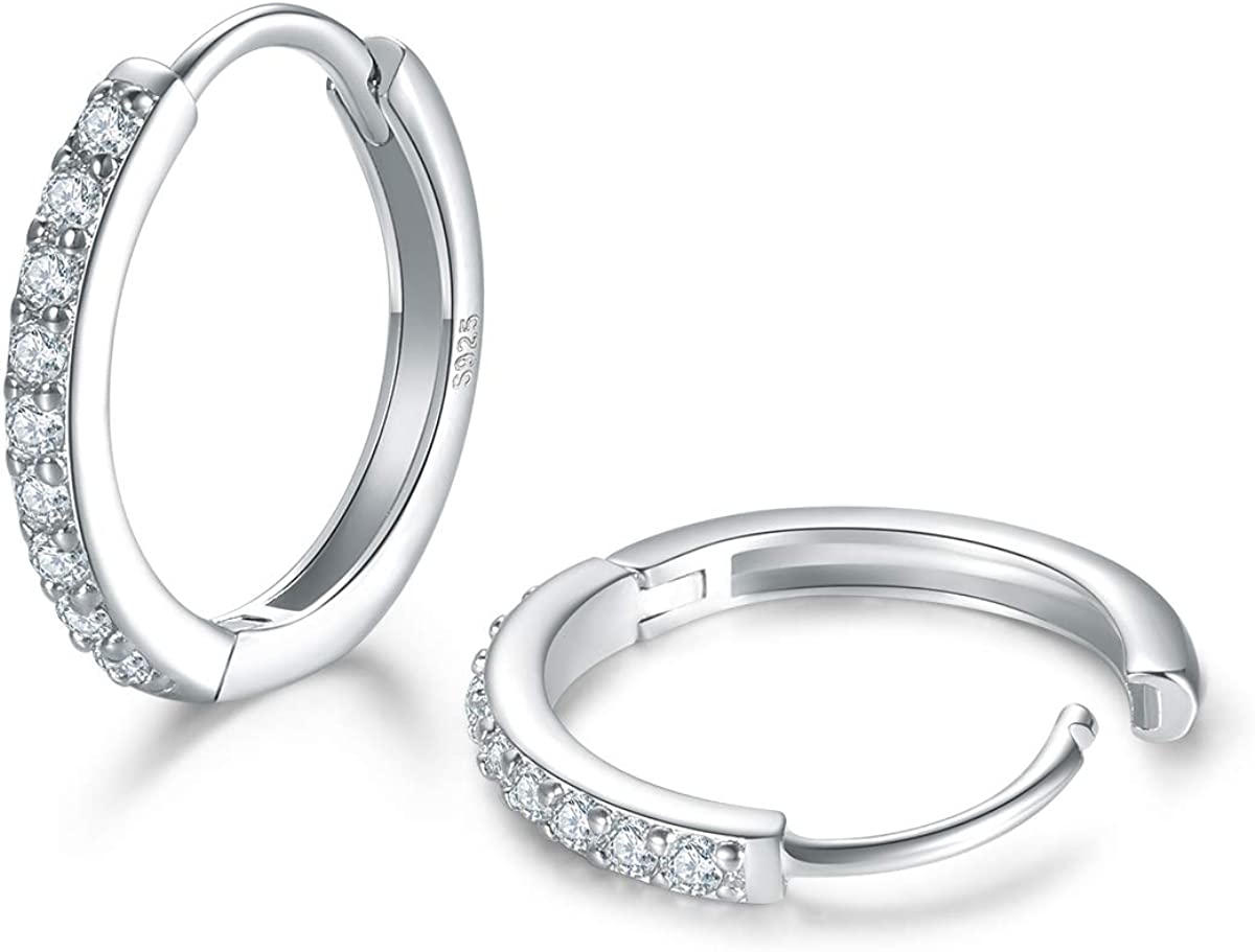 3 Pairs Sterling Silver Small Hoop Earrings Tiny Cartilage Earring Cubic Zirconia Cuff Huggie Earrings Mini Hoops Earrings Piercing for Women Girls