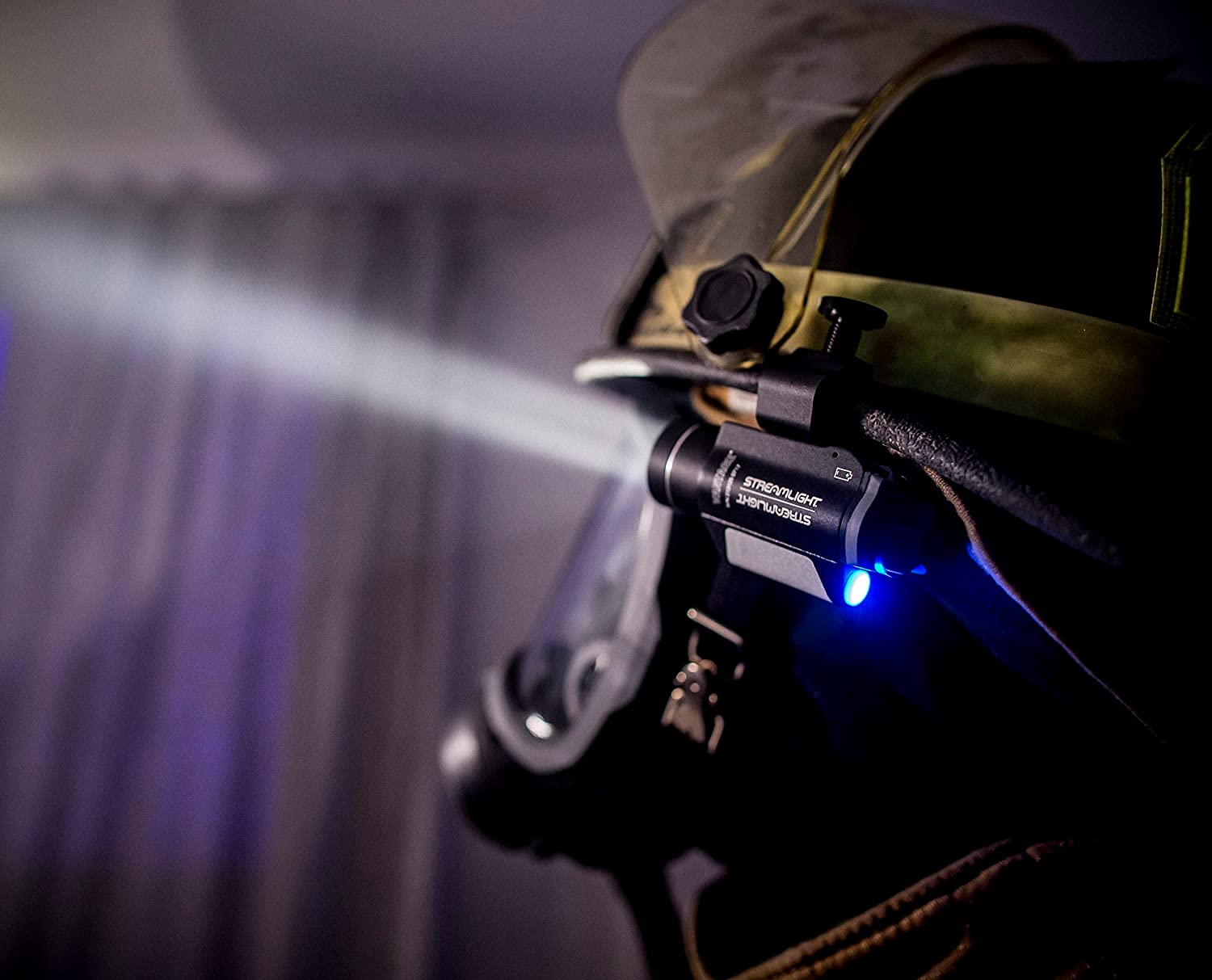 Lightweight, compact and low profile, the Vantage helmet mounted tactical light has been designed to easily attach above or below full brim Fire and Industrial helmets. The light features the latest in power LED technology combined with an ultra-bright blue LED safety tail light. Powered by lithium batteries, the C4 LED technology produces 2 to 3 times the output of previous LEDs. Sealed for water-resistance.