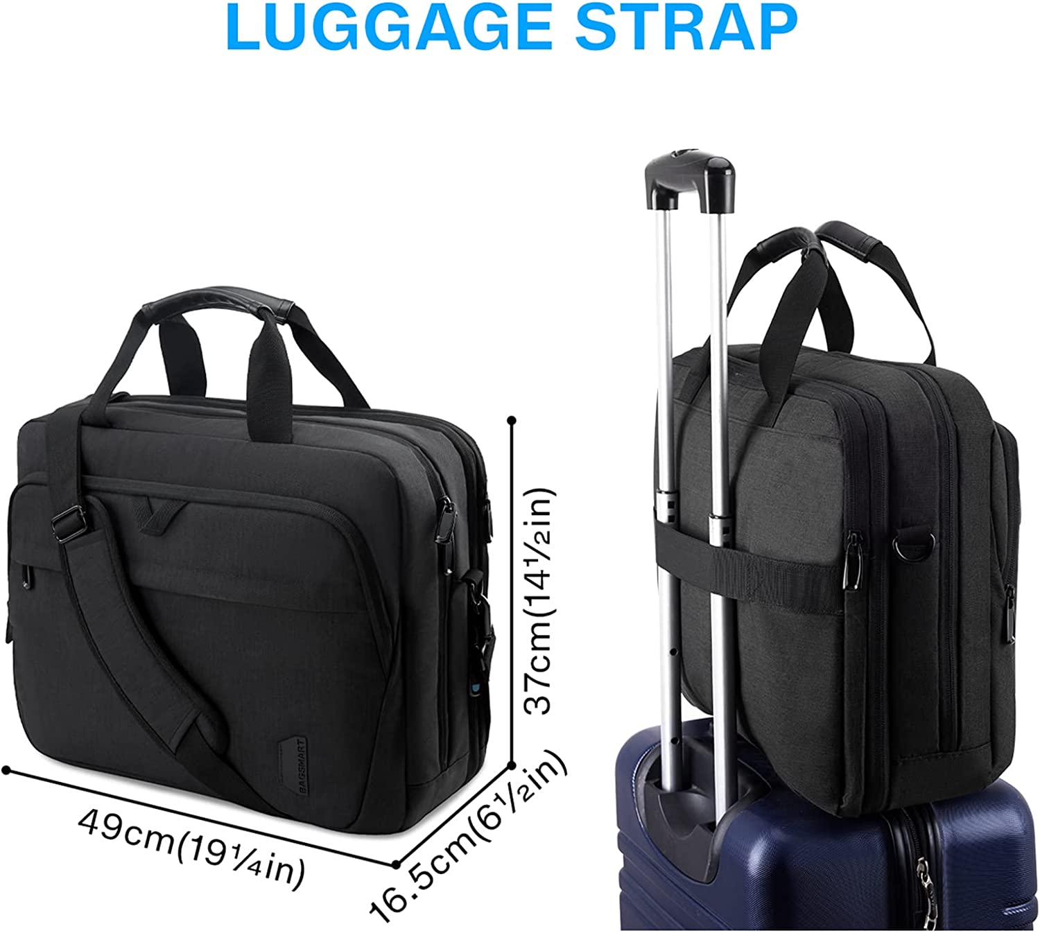 - EXPANSION & MULTIPLE COMPARTMENTS- 17.1"L x 6.5''(up to 8.7'') W x 13"H; weight: 2.31 lbs. The expansion zipper makes it more flexible, the laptop briefcase can be transformed as a large duffel bag when necessary. Up to 4 compartments can meet all your needs well. The large tech compartment can fit up to 17-17.3 inch laptop. Two front pockets allow you to put daily necessities in an organized manner.The expandable document compartment can storage your A4 folders, magazines, clothes or umbrella.