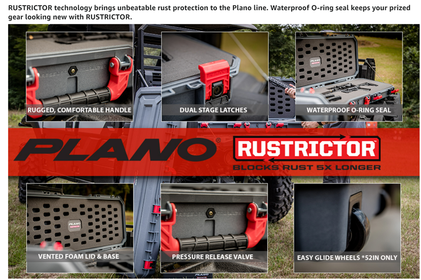 • PLANO ALL WEATHER SINGLE TACTICAL GUN CASE: Defend your firearm from impact and water damage and with this hard rifle case. The VCI-infused resin and foam emitter blocks rust/corrosion 5x longer than competing products (per accelerated lab testing).