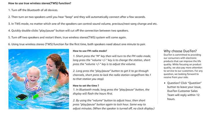 - MULTIFUNCTIONAL LED DISPLAY-The shower speaker’s LED display allows you to check time, mode, battery, volume, and the LED display design help to identify the keys in different position. In FM radio mode, the shower radio supports to change the station within frequency range and enhance the signal via antenna, bring you a more convenient and comfortable life.