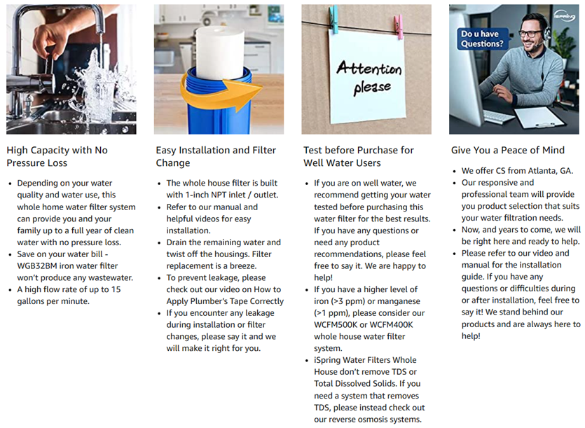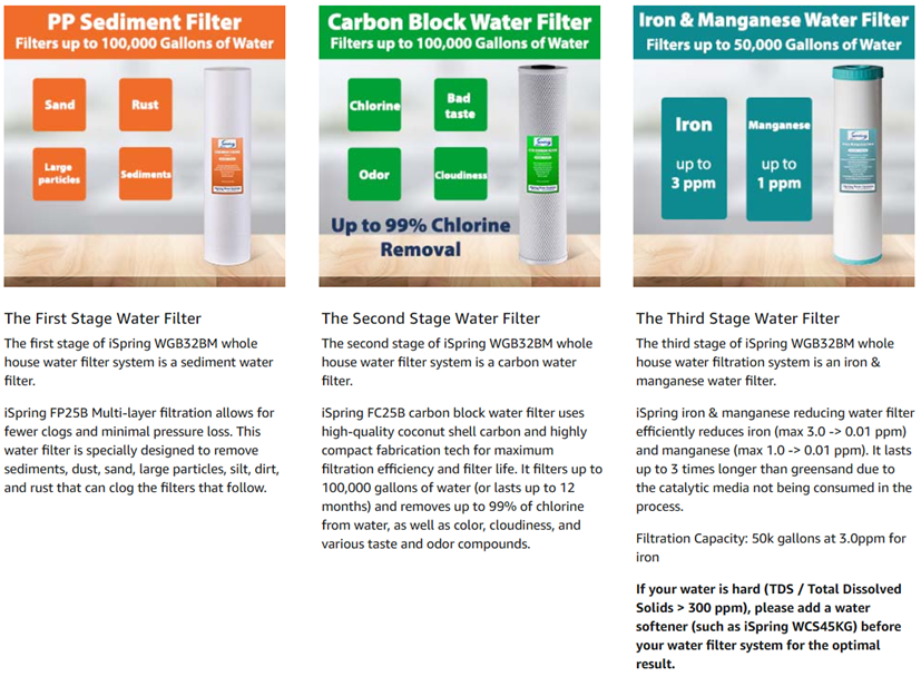 iSpring Whole House Water Filter System w/Sediment, Carbon, and Iron & Manganese Reducing Water Filters, 3-Stage Iron Filter Whole House, Model: WGB32BM