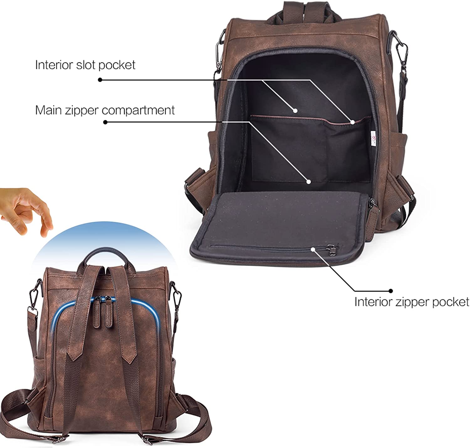 [Back Zipper Closure]: Anti-theft design keep your belongings safe. U-shaped zipper fully open the travel backpack purse, allowing you to get the items easily. Perfect for a lightweight day pack.