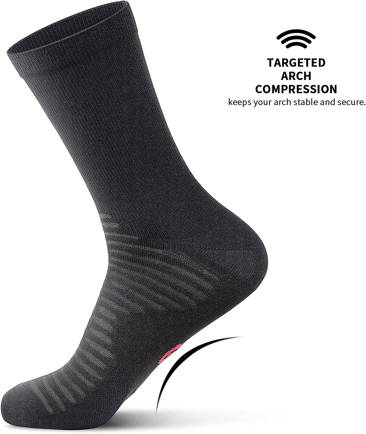 • [ARCH SUPPORT FOR YOUR FEET] The arch of the foot area is designed with a triangle-like pattern to provide support for the medial and lateral sides of the foot. Targeted arch compression keeps your arch stable and secure. Perfect for everyday use and boost your performance for any sports activity, yoga, gym, cycling, running, walking, standing, travel, or just sitting on the couch
