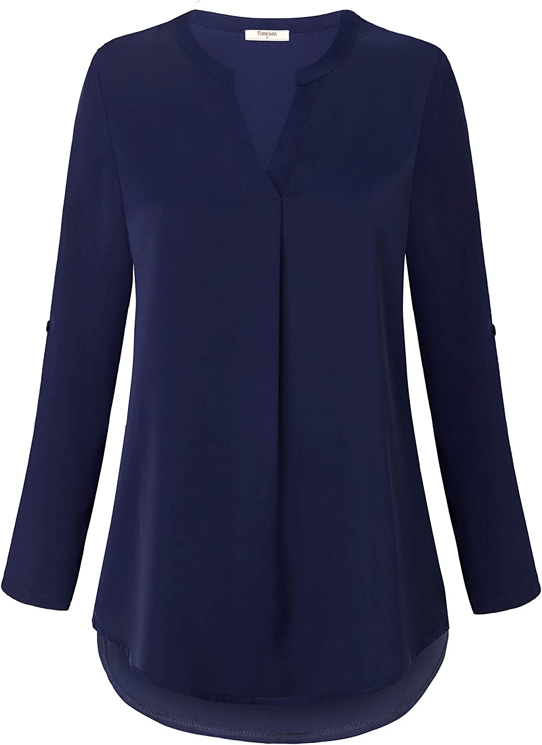Timeson Women's Casual Chiffon V Neck 3/4 Sleeve Blouse Tops