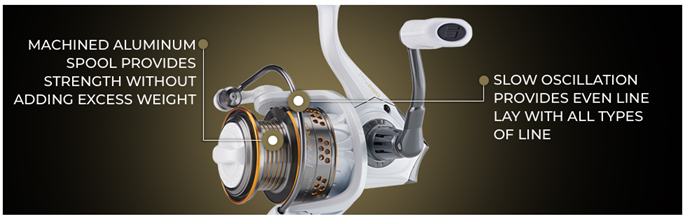 Taking design cues from the Revo lineups, the Pro Max spinning reel boasts the same exceptionally smooth package as its low-profile counterpart with a lightweight graphite frame and seven bearing system. The Pro Max also features our Rocket Line Management System allowing maximized casting distance while reducing wind knots.
