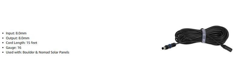 Gives you 15 extra' To connect Goal Zero boulder Or nomadic solar panels to each other. Can also be used to connect panels to Yeti power stations or Sherpa power Pack to charge.