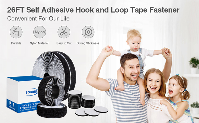 SOURRI Self Adhesive hook and loop tape sticky back fastener is great for organize mess things on home,office,school supply, like fix car seat mat, Hanging your pictures, craft projects, pedal board, and remote control, crafts, kitchen organizing, and more. Perfect tools for organization.
