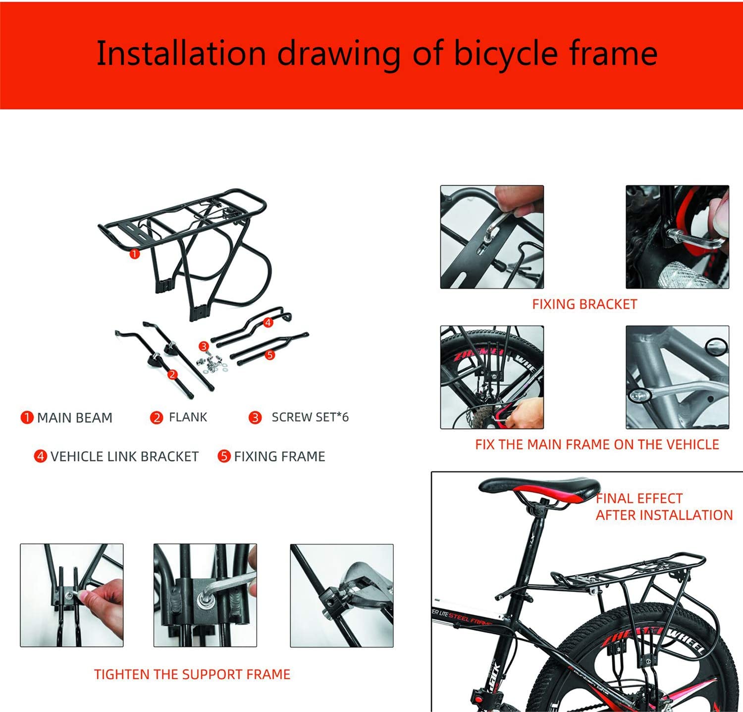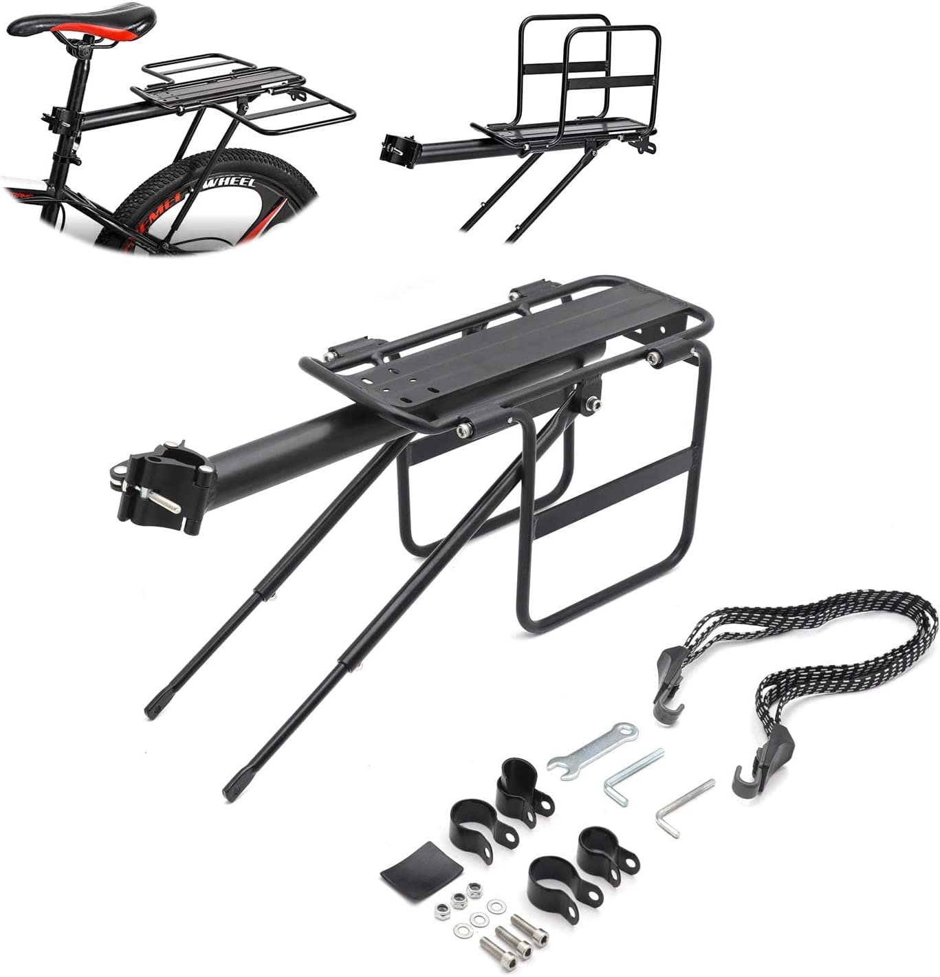 HTTMT- Aluminum Bike Rear Rack Seat Luggage Carrier Bicycle Post Mountain Mount Pannier [P/N: ET-BIKE-RACK005-BK]