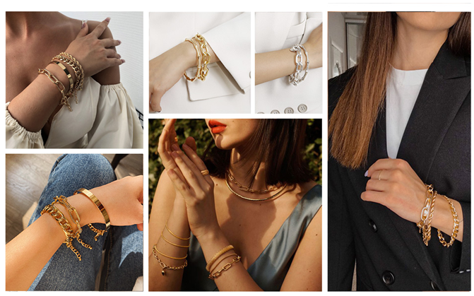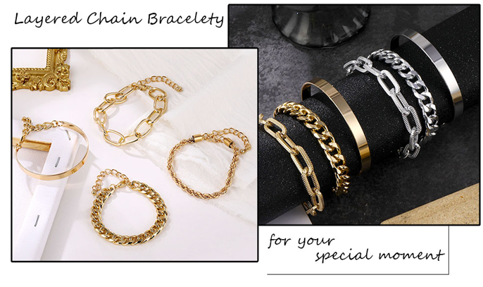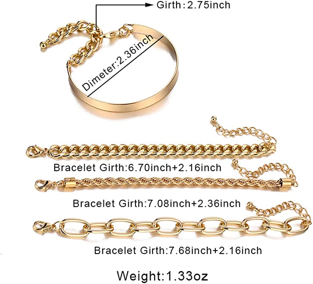 • 4 stylish link bracelet in different styles, bracelet girth 6.7 inch, brangle dimeter 2.36 inch, 2 inches or more extension chain, suitable for most people's wrists