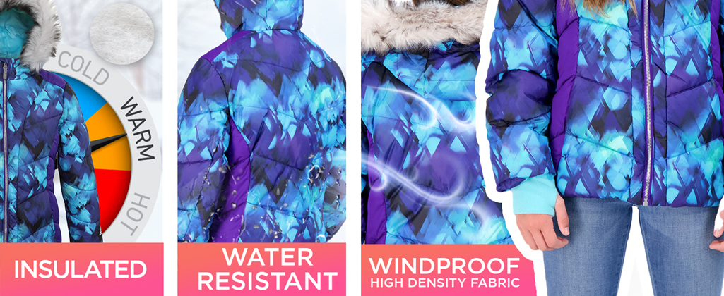 Soft, lightweight and insulating, highly breathable, and Hydrophobic which means that the ZeroXposur Marianne winter jackets for girls fleece cuffs holds less than 1% of its weight in water and doesn't lose its insulating effectiveness when wet