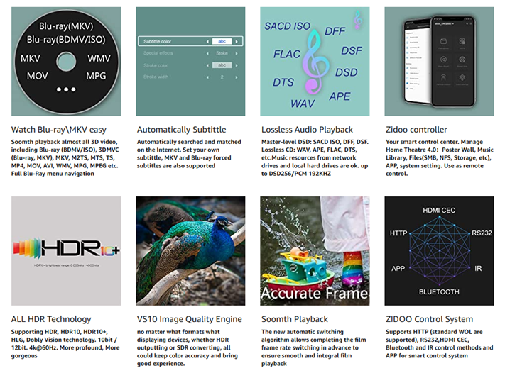 - 【ZIDOO Service Support】ZIDOO is a team that has been serving the home audio-visual industry for a long time. Any problem with zidoo device use, please feel free to email the seller. A home theater Forum on our official website. We attach great importance to your suggestions and opinions. Welcome to ZIDOO