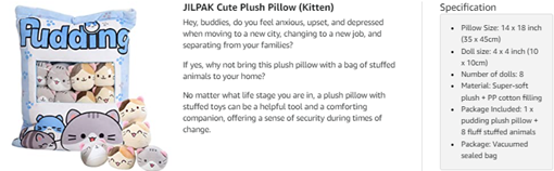 Not only a soft plush pillow, but also a snack bag of stuffed animals.