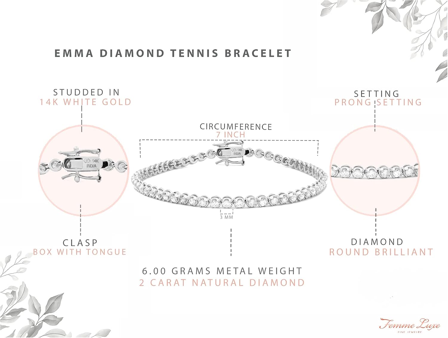 Femme Luxe Emma Diamond Tennis Bracelet (2 ct. t.w.) In 14K White Gold, G-H Color, I2 Clarity Giftable Jewelry