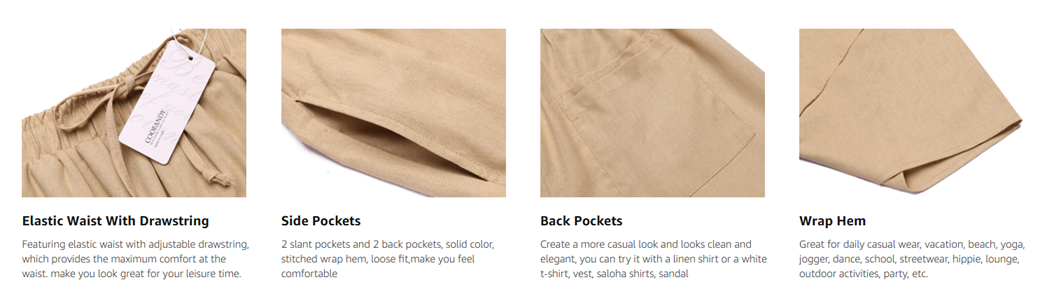 • Easy to Match: Create a more casual look and looks clean and elegant, you can try it with a linen shirt or a white t-shirt, vest, saloha shirts, sandal, canvas shoes, flip flops and so on. This harem pants are suitable for both men and women.