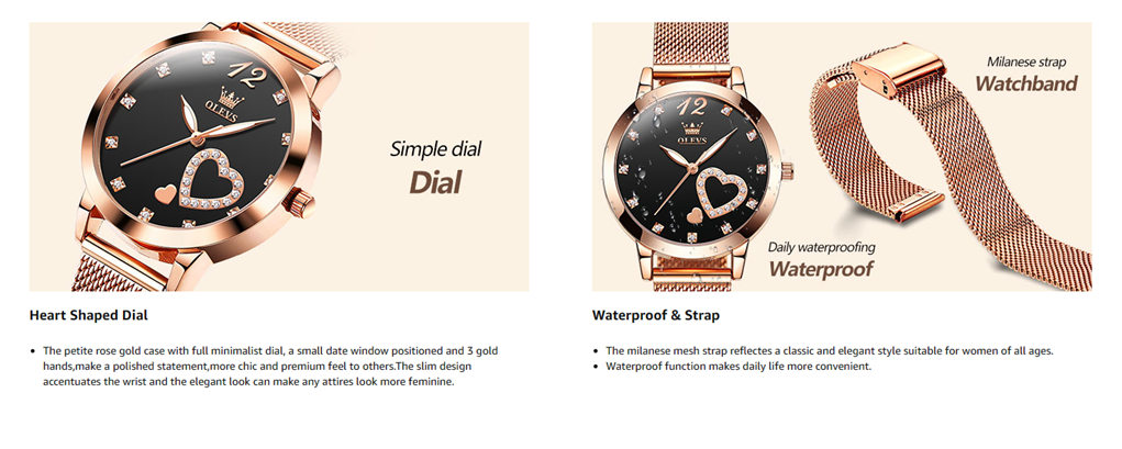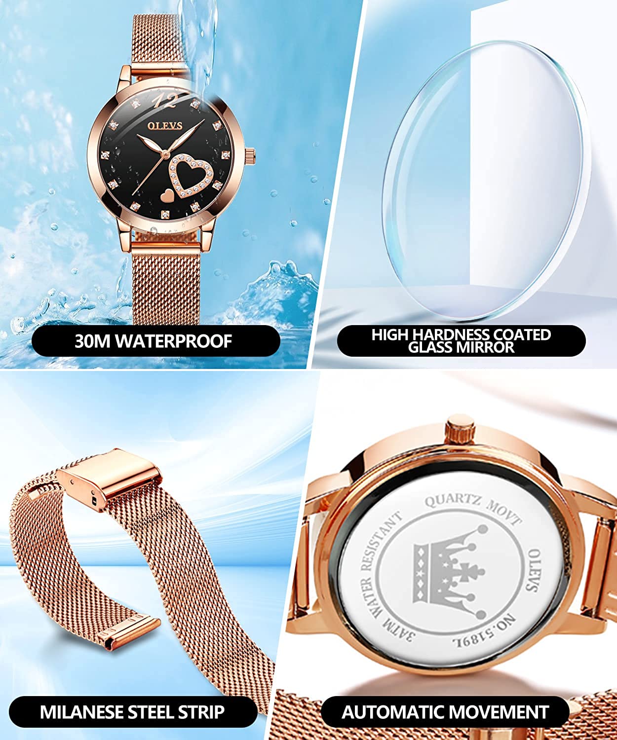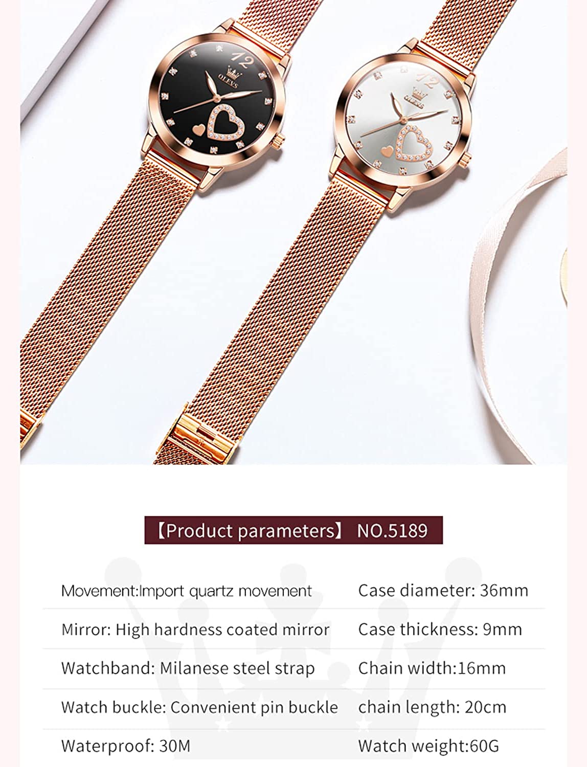 • ?【OLEVS Professional Service】Dress Ladies Watch is quickly delivered by Amazon official.Customer satisfaction is our first priority, so every watches produced strictly to the state rules.checked carefully before packaged.If you have some questions about watch quality ,please contact with me,we provide 30 days of free returns.I will provide you with a satisfactory solution