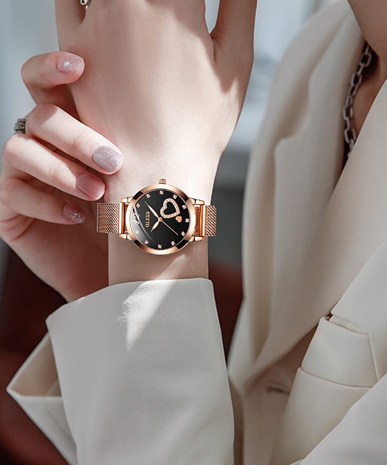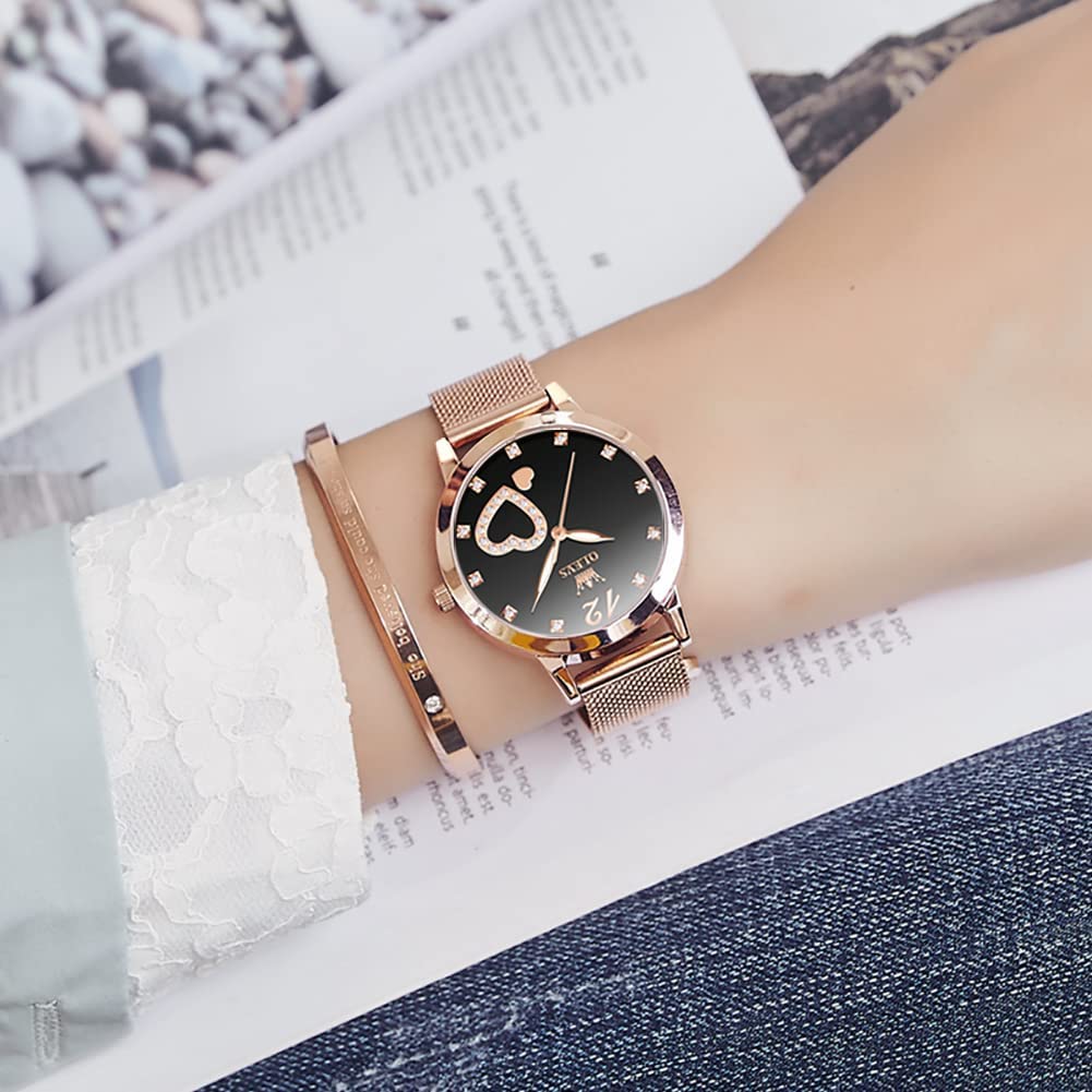 • ?【 Woman's Rose Gold Watch】Fashion Watches for Women with Japanese Quartz Movement, High Quality Assurance, Stable Running Time.Luxury Woman Watch is scratch-resistant and durable.Gold and Black Female Watch with Hook Buckle.Diamond Womens watch Very Stylish and Elegant,Stand the test of time