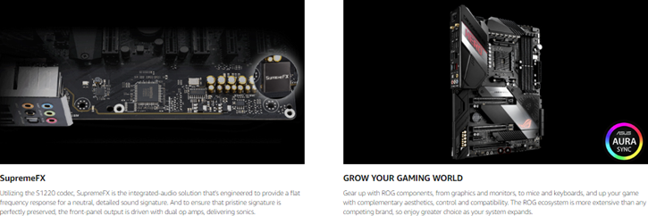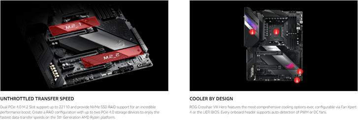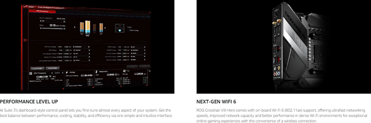 • Comprehensive thermal design: active PCH heatsink, M. 2 aluminum heatsink and ROG cooling zone.