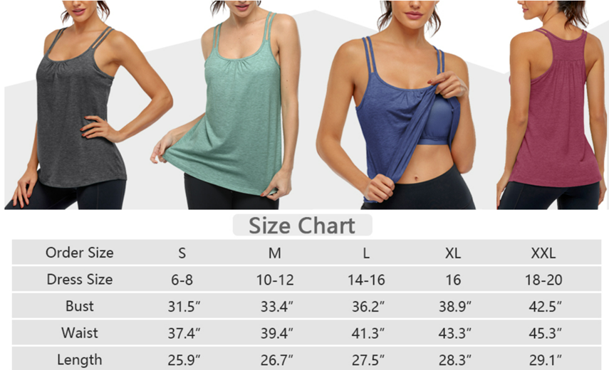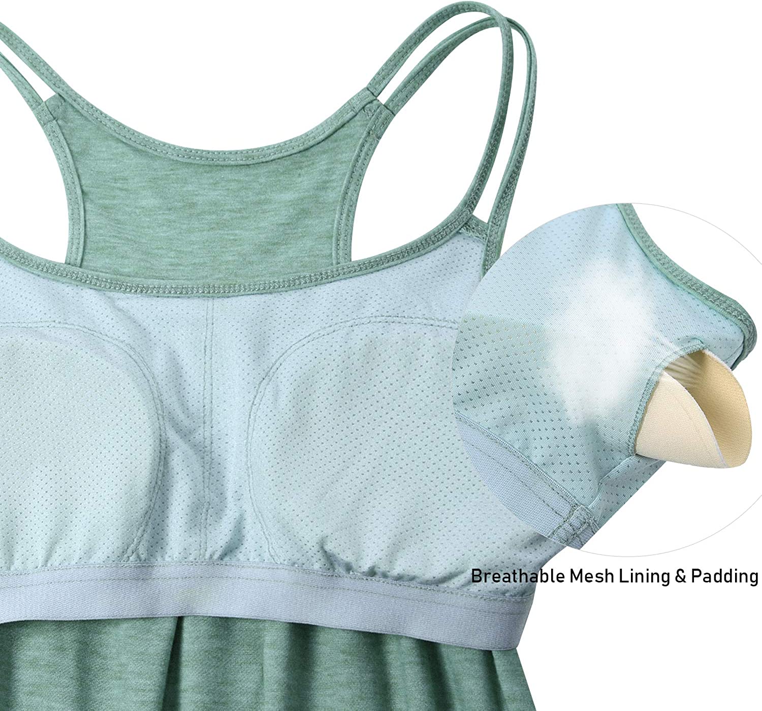 √Built in Bra: Designed for low impact. Shelf bra tank tops built in removable pads gives a comfort feel, provides light support and coverage. You can also take off the pads and wear a sports bra under for high impact.