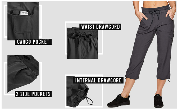 CARGO STYLE CAPRI PANTS: Travel capris with side cargo pocket for convenient on-the-go storage while running or jogging around town. Always have your essentials with these cargo capris for women.