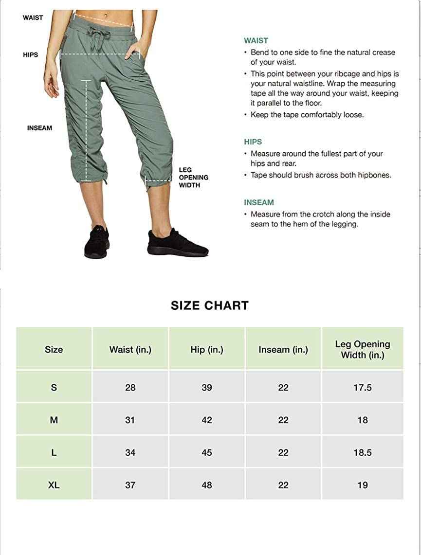 21-inch capri-length inseam (based on a size S, model is 5ft 9.5in for reference)