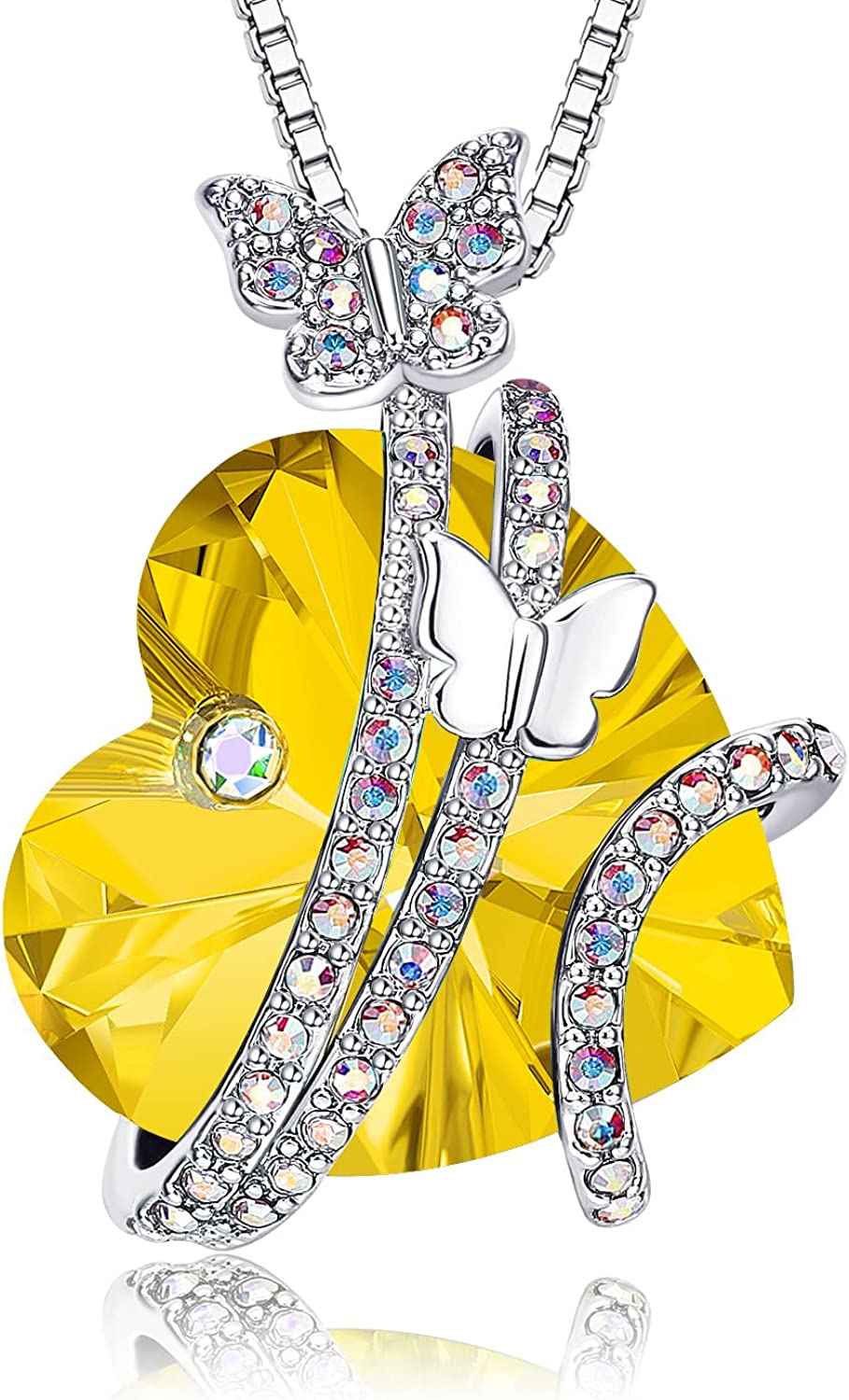 ASELFAD Butterfly Love Heart Pendant Necklaces with Birthstone Crystals, Mothers Day Gifts, Anniversary Birthday Jewelry for Women Mom Wife Girlfriend