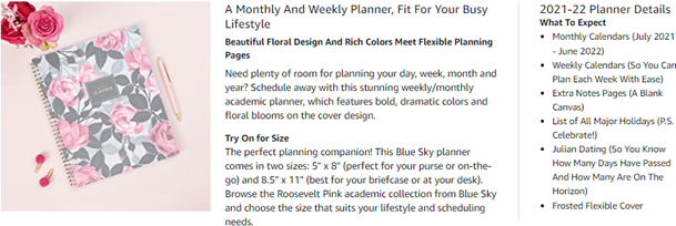 • July 2021 - June 2022 floral day planner with 12 months of monthly and weekly pages for easy academic planning and scheduling; 3 bonus monthly pages (April 2021 - June 2021) are included