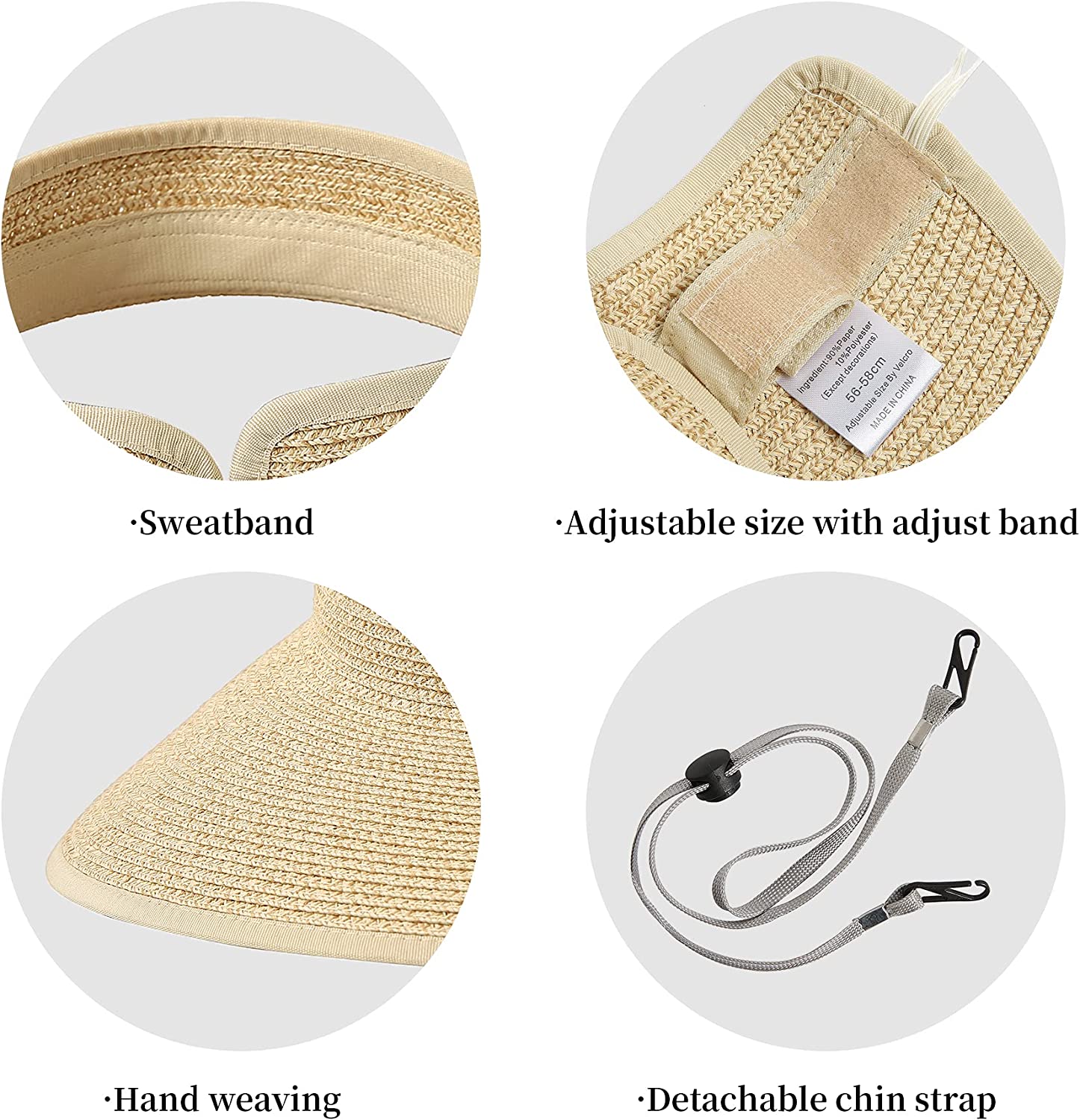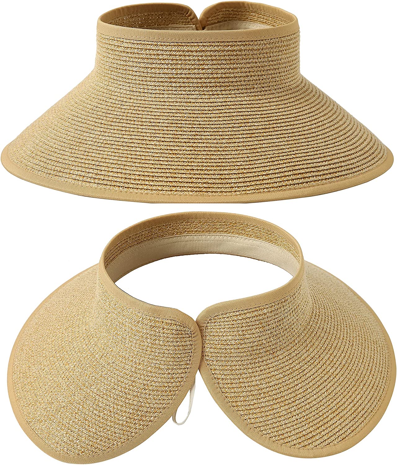 Lanzom Women Packable Hat Sun Visor Hats Wide Brim Straw Roll Up Ponytail Summer Beach Hat UPF 50
