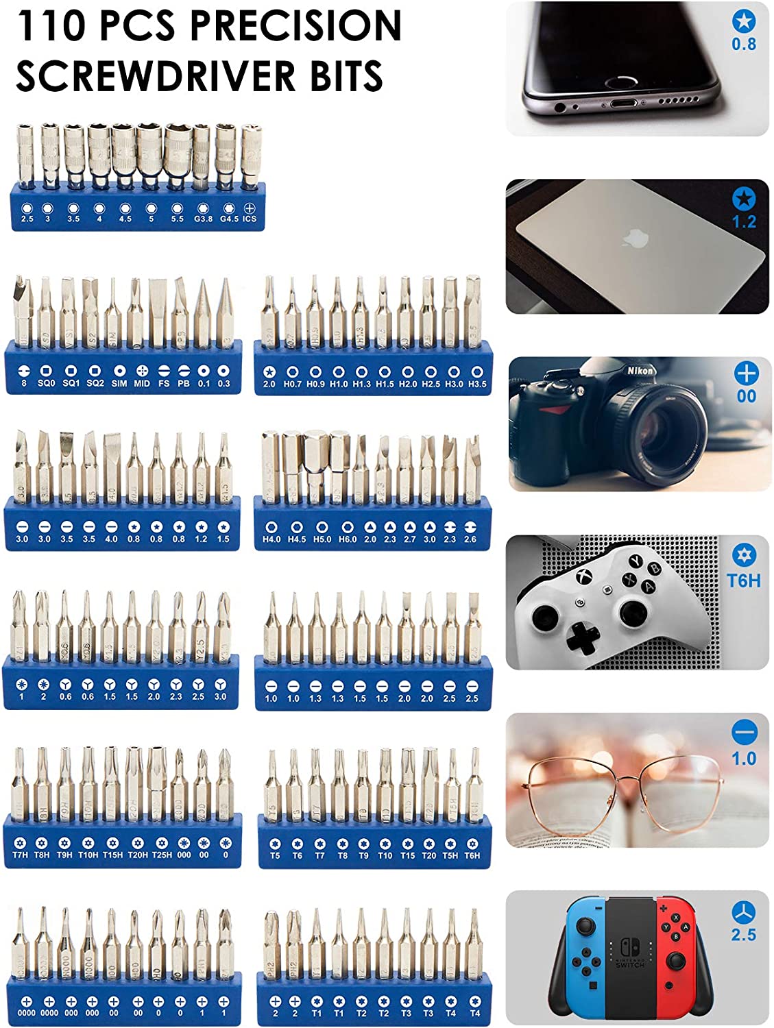 - 【Variety & Versatility】This screwdriver set has 110 different bits(Phillips, Flat Head, Torx, Torx Security, Pentalobe, Hex, Gamebit, etc), which is useful for laptop, PC building, cell phone, tablet, MacBook, iPhone, iPad, game consoles/controller, Ring doorbell, sewing machine, HVAC, knife and more. This is the toolkit every DIYer, fixer, hobbyist, and professional needs to tackle any job, also a decent gift for your families, friends, colleagues, etc
