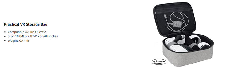 - Size: 10.04L x 7.87W x 3.94H inches. Weight: 0.44 lb. Suitable for taking this carrying case with Oculus Quest 2 VR for travel, office, playful activities. Not Compatible with Elite Strap.