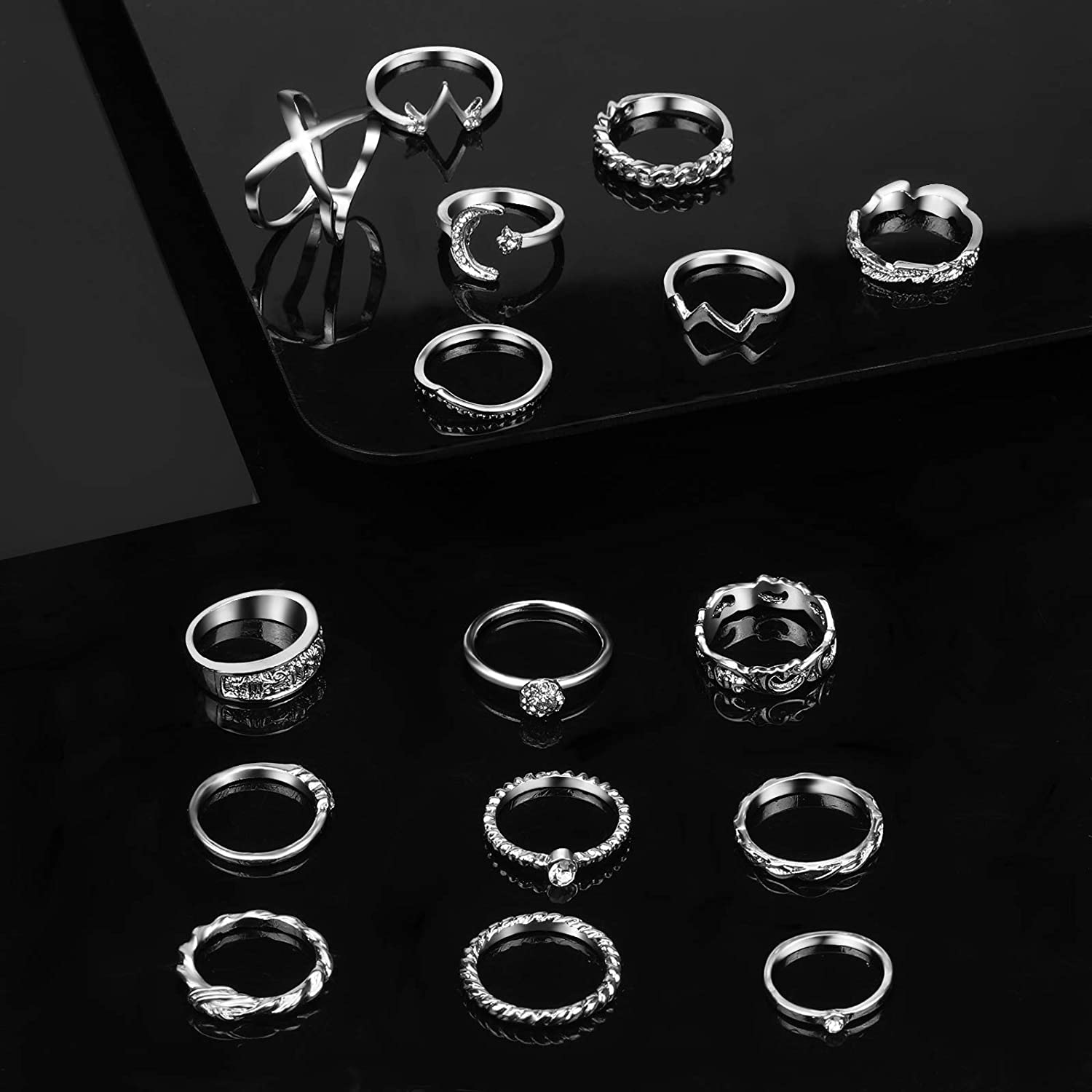• DESIGN - These rings set for women and men has various styles: simple ring, crystal ring, criss ring and rope ring, etc, which can be matched with all kinds of clothes. You will be attractive when you wear them.