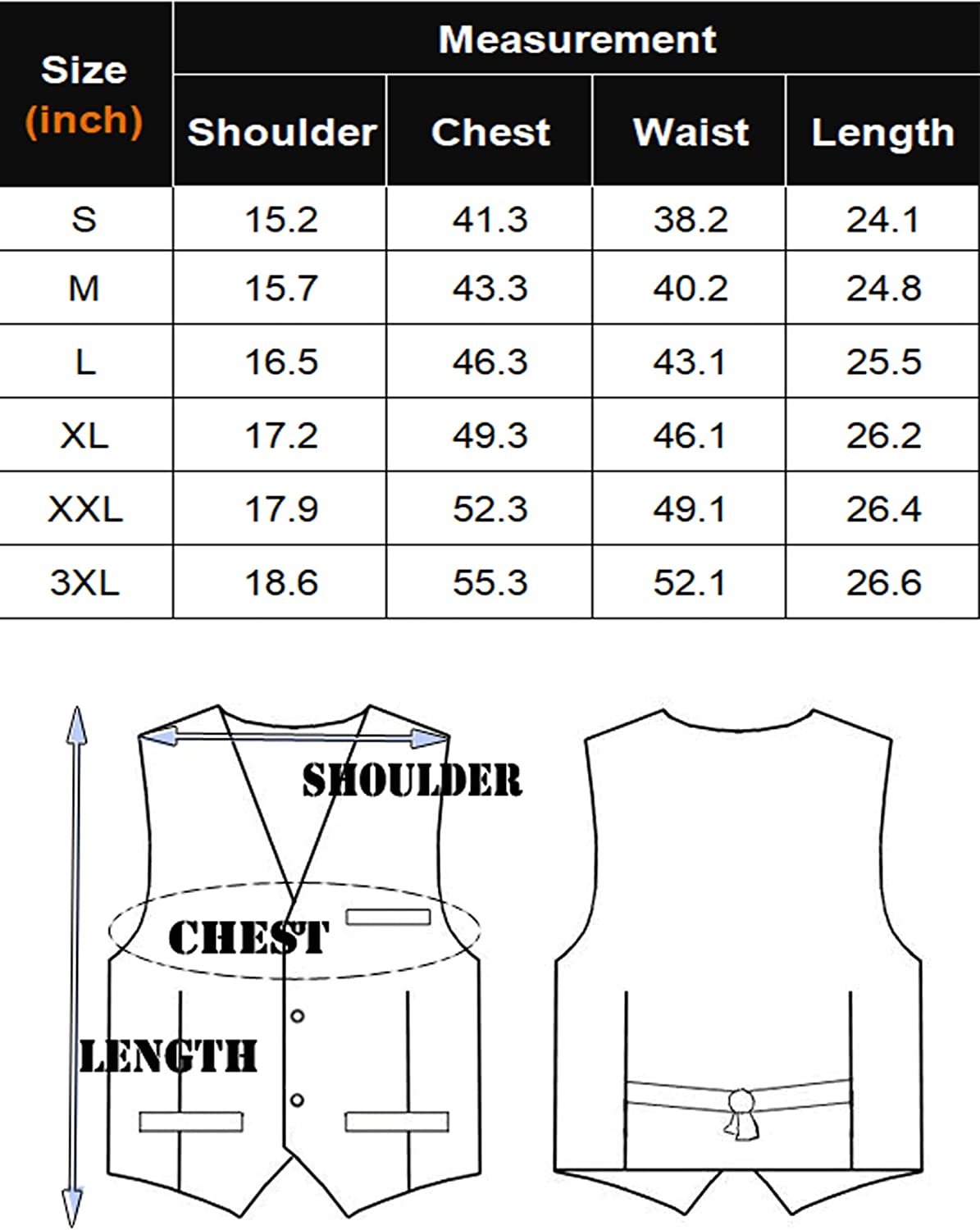 • Dry Clean or Hand Wash. Notice - When You receive this suit vest first time, the side two pockets is closed by some stitches. So After Cutting Stitches, You can use pockets.To ensure your best fit size,please check the size information carefully to make sure your measurement before ordering.