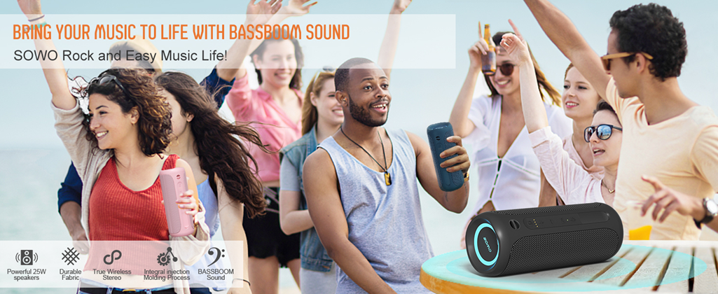 • [BASSBOOM BASS AND WIRELESS STEREO SURROUND SOUND]: The BASSBOOM technology designed by SOWO portable Bluetooth speaker improves the bass by 28% on the original basis, enhancing stronger auditory enjoyment.The wireless speaker with bluetooth supports TWS function, you can purchase two speakers at the same time to truly enjoy the stereo surround sound of a movie theater by pairing the TWS function.