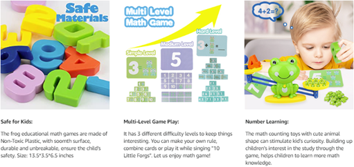 - Creative Counting Toys: The math counting toys with cute frog shape can stimulate kid's curiosity. Building up children's interest in study through game