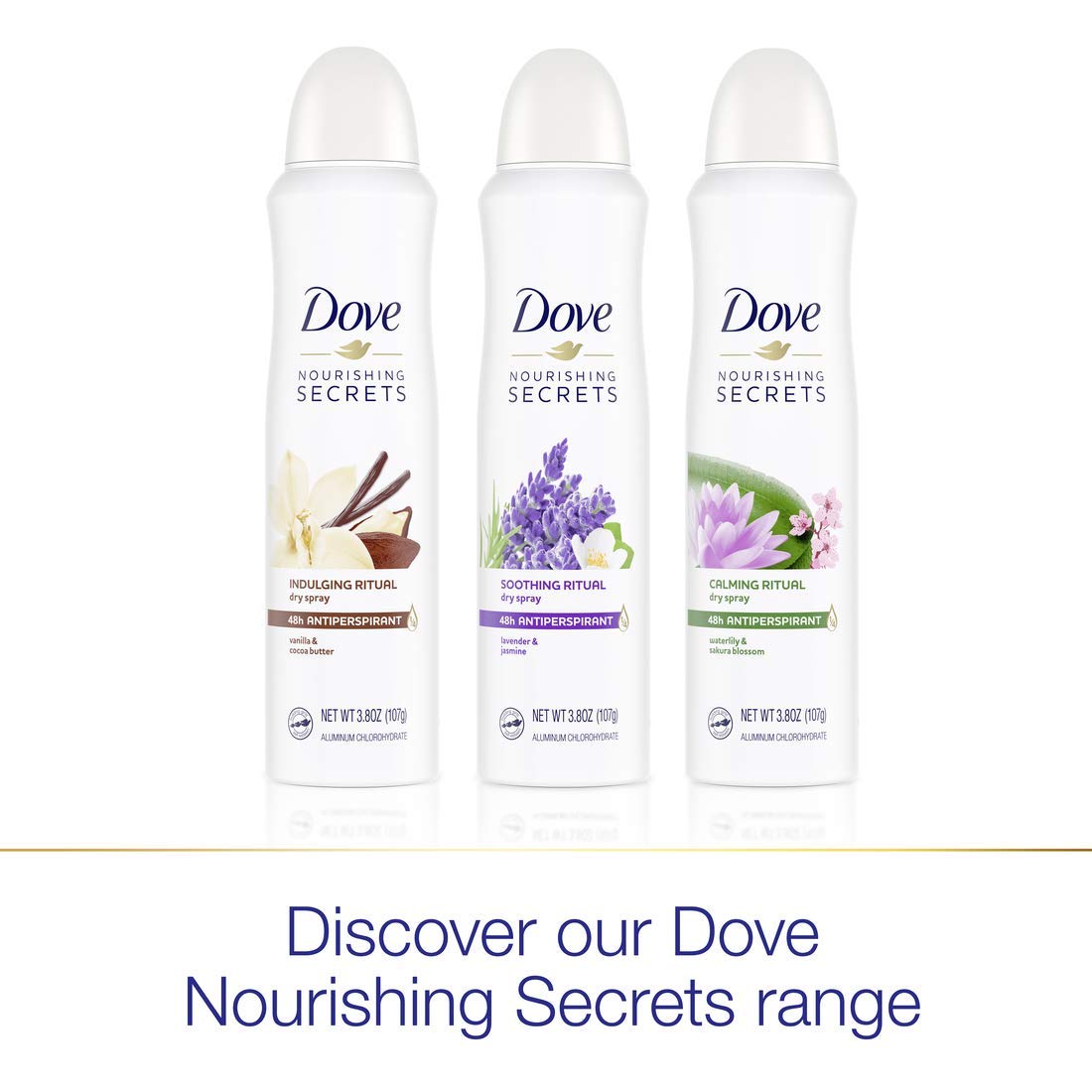 Dove Nourishing Secrets Dry Spray Antiperspirant Deodorant Waterlily & Sakura Blossom 3 Count for Women 48 Hour Sweat & Odor Protection 3.8 oz