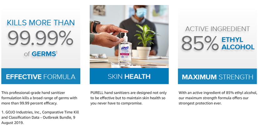 Originally designed for close-quarter settings with higher risks, PURELL PRIME DEFENSE Advanced Hand Sanitizer has the efficacy necessary for urgent needs as well as your everyday life. Our maximum strength formulation features 85 percent ethyl alcohol and advanced technology that breaks down germ cell walls. This professional-grade hand sanitizer kills a wide range of germs with more than 99.99 percent efficacy. Hands feel clean and refreshed after every use. Perfect to strategically place in offices, small businesses, work-from-home environments, or anywhere you want extra germ-killing support. Case pack includes four (4) 12 fl. oz. pump bottles of PURELL PRIME DEFENSE Advanced Hand Sanitizer. As the inventors of PURELL hand sanitizer, GOJO Industries has been leading the world to a new way of keeping hands clean since 1988. Everything our purpose-driven Family Enterprise does is rooted in science and innovation to make the world a better place.