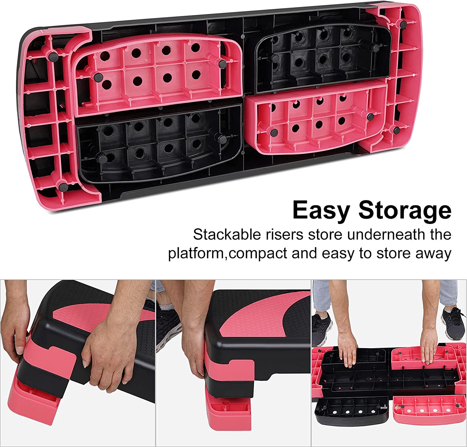 • 【Easy to Carry and Store】31"(L) x 11"(W) x 4"(H), it's easy to carry to workout classes at a gym or office. Stack the risers underneath the platform for easy storage. Great for workout classes, recovering from an injury, or everyday regular workout routines.