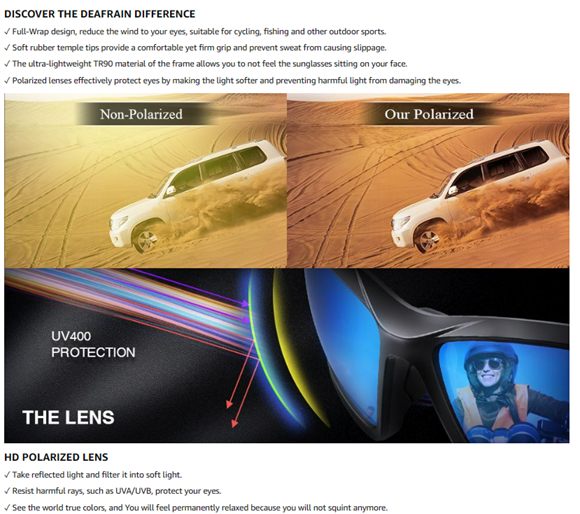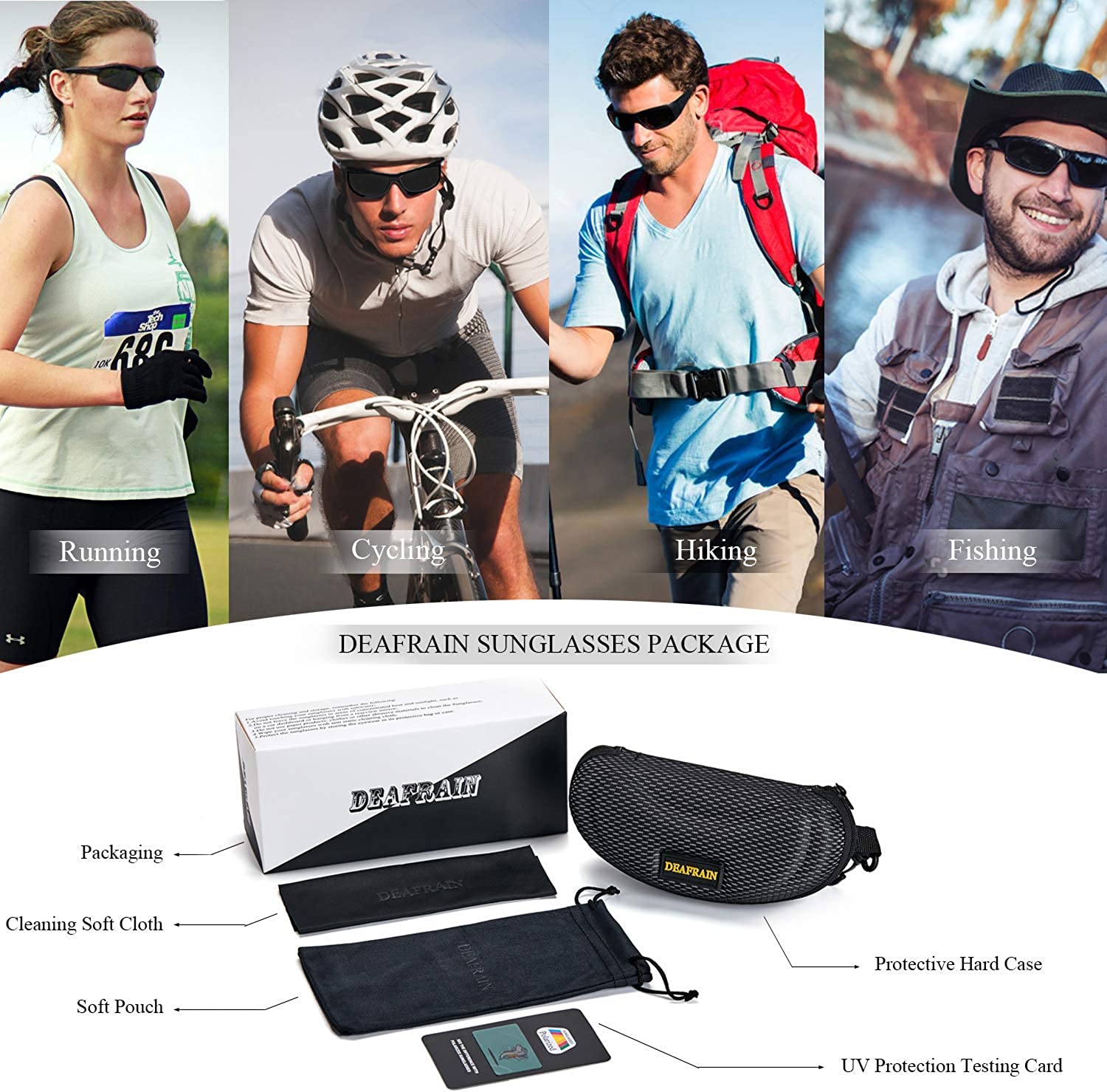 • {EXCELLENT HD POLARIZED LENSES} -1.0mm polarized TAC scratch-resistant lenses with 100% UV protection against the sun's harmful rays.DEAFRAIN polarized lenses offer high contrast, perfect clarity and peak visual acuity. Not only perfect for your weekend adventures, but also an excellent choice of your weekday commute.
