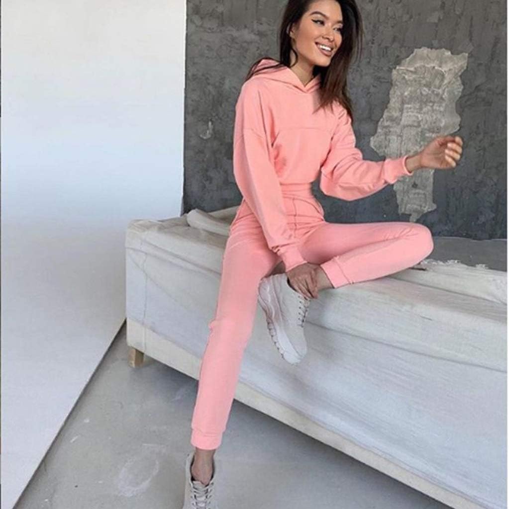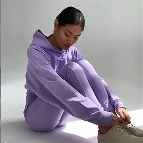 YUTRD ZCJUX 2pcs Long Sleeve Crop Top Hoodies Women Two Piece Outfits Stacked Pants Fashion Clothing Set Tracksuit (Color : B, Size : Medium)