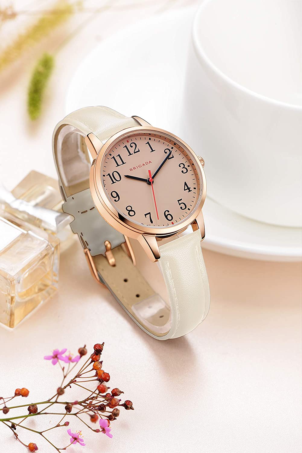 BRIGADA Women's Watch Elegant Watch for Women Leather Band Ladies Watch for Women Waterproof